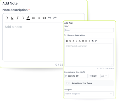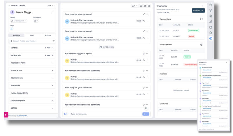 Keep every client and lead organised in one place with personalised profiles, notes, and timelines that show every message, payment, and related task.