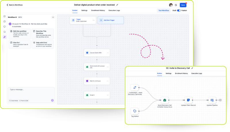 You decide what happens and when, then let Hubsy workflows handle everything without losing your personal touch.