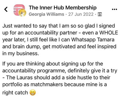 “It's given me the confidence to talk about social media with much more authority, to raise my hourly rate and to be bolder in charging more. The Inner Hub has made a hugely positive impact on my mindset and my business.”