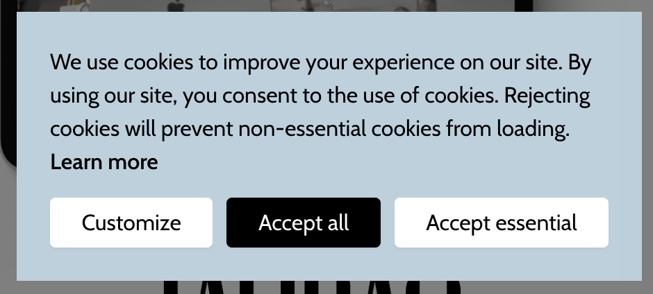You also must have a cookie banner that asks website visitors for consent before loading any cookies. Not having one of these means your website is not compliant, and you could face big fines.